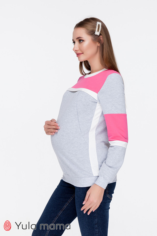 Модний світшот для вагітних та годування SAVERINE SW-39.012, сірий з рожевим