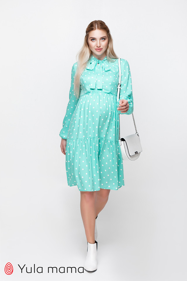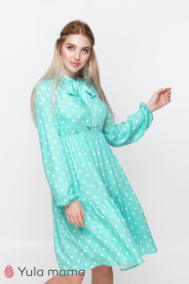 Сукня для вагітних та годування TEYANA DR-10.041 аквамарин в горошок