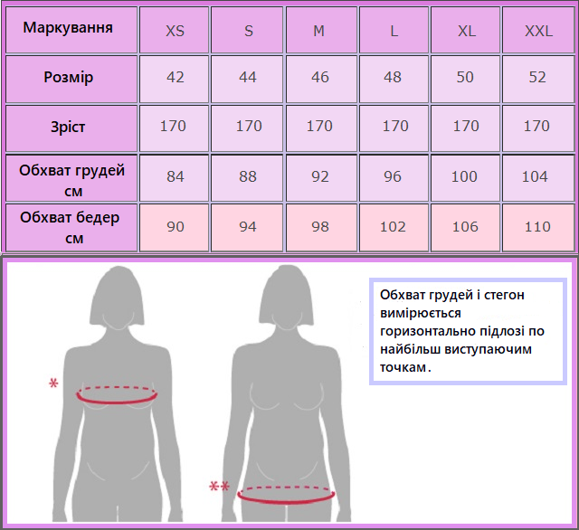 На фотографії: розмір на моделі М, об'єм грудей 92 см, стегон 99 см, зріст 176 см
