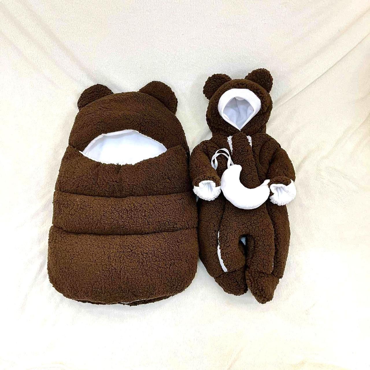 Комплект Тедді для новонароджених дітей, спальник та комбінезон 56-62 розмір, темно-коричневий