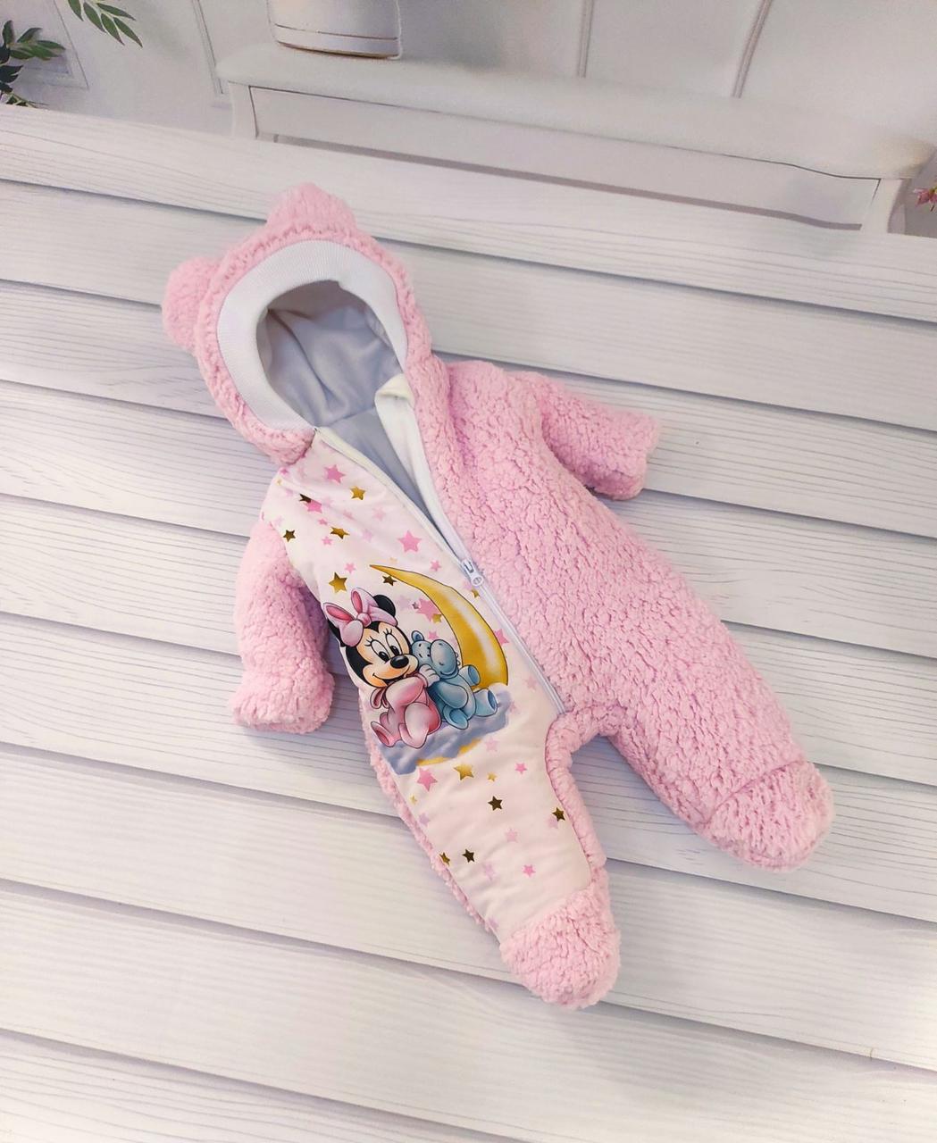 Теплий комбінезон Тедді з принтом Міні з бегемотиком для новонароджених дівчаток, рожевий