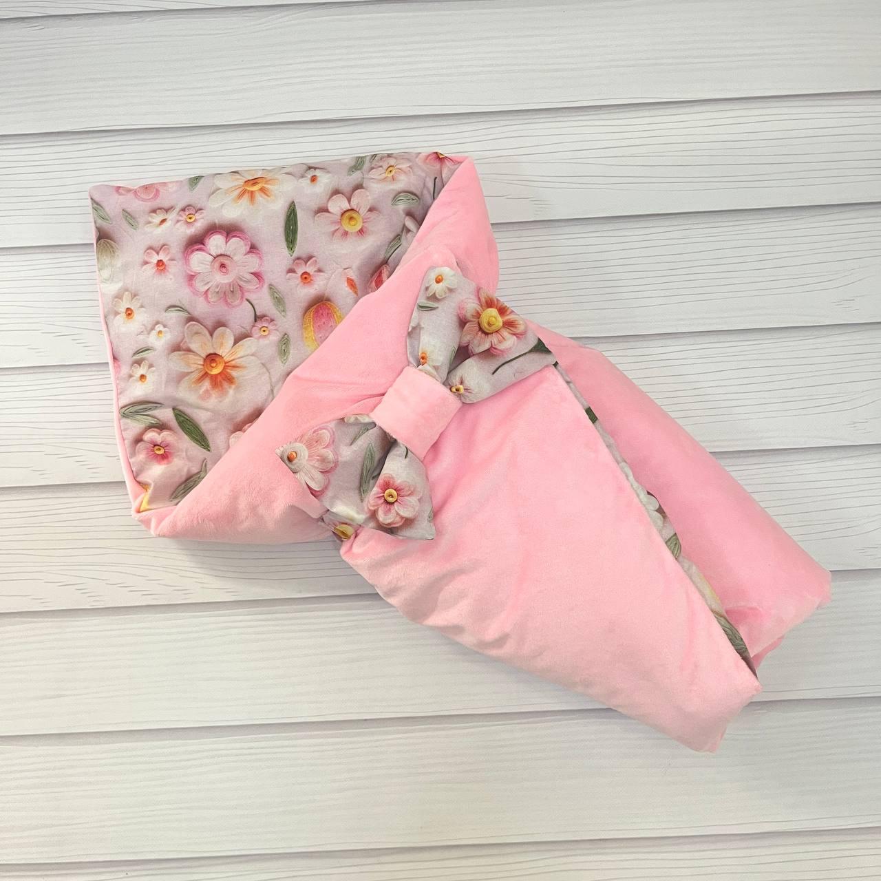 Літній конверт з гладкого плюшу для новонароджених, рожевий з квітковим принтом