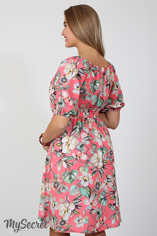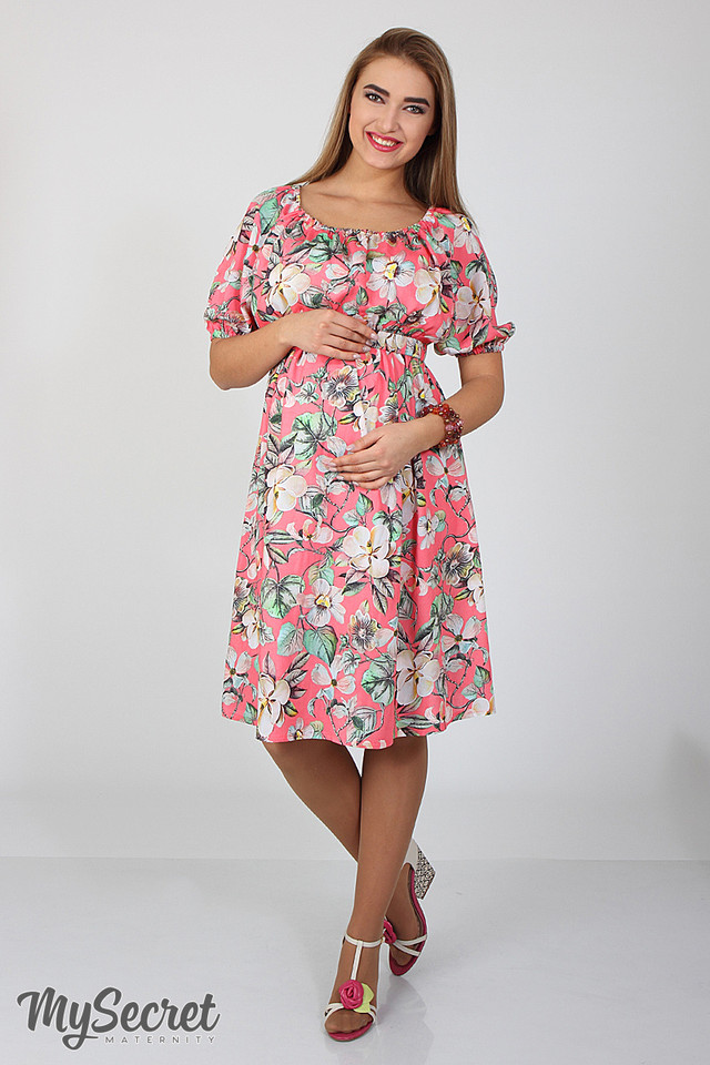 Плаття для вагітних та годування Roxolana DR-27.101, квіти на кораловому, розмір S